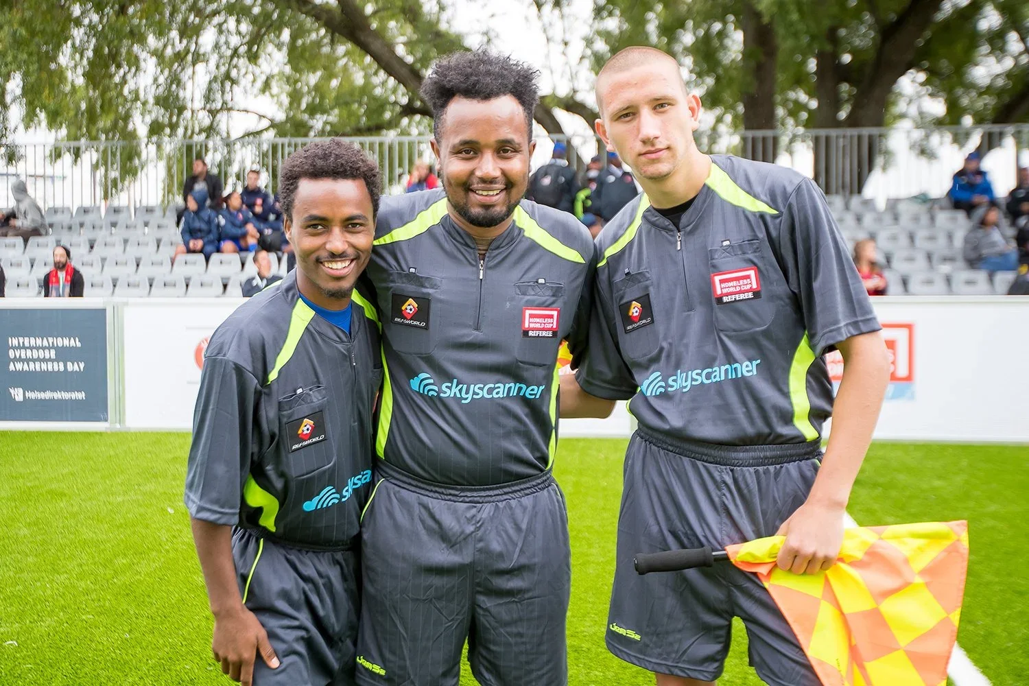 2012 Canada player turned referee Ed Kiwanuka will be whistling the men’s final, supported by 2013 Norwegian player turned referee Adil Leite, 2015 Indonesian player Jaka Arisandy, and 2014 Norway player Annette Veronica Høivaag Loftus. Marianne Olsen, Isha Silare, Natalie Handley, and Dina Kagen will officiate the women’s Homeless World Cup final.