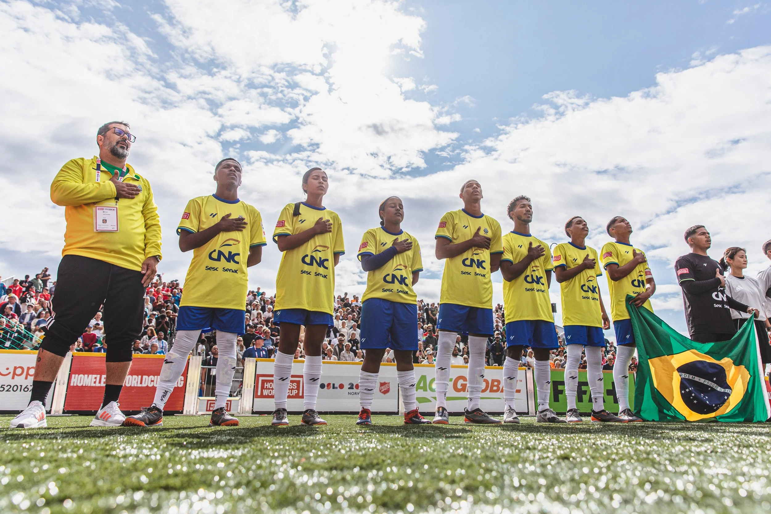 It was then the turn of the Norwegian men to take to the home turf, facing up against Brazil, Homeless World Cup winners last time in Oslo. Fans were treated to a frenetic encounter which saw the South American nation run out 7-2 winners. Brazil took the lead with a quick counter-attack before a second score saw them go 2-1 up. Norway clawed one back before more chances taken saw Brazil lead 3-2 at half-time.
