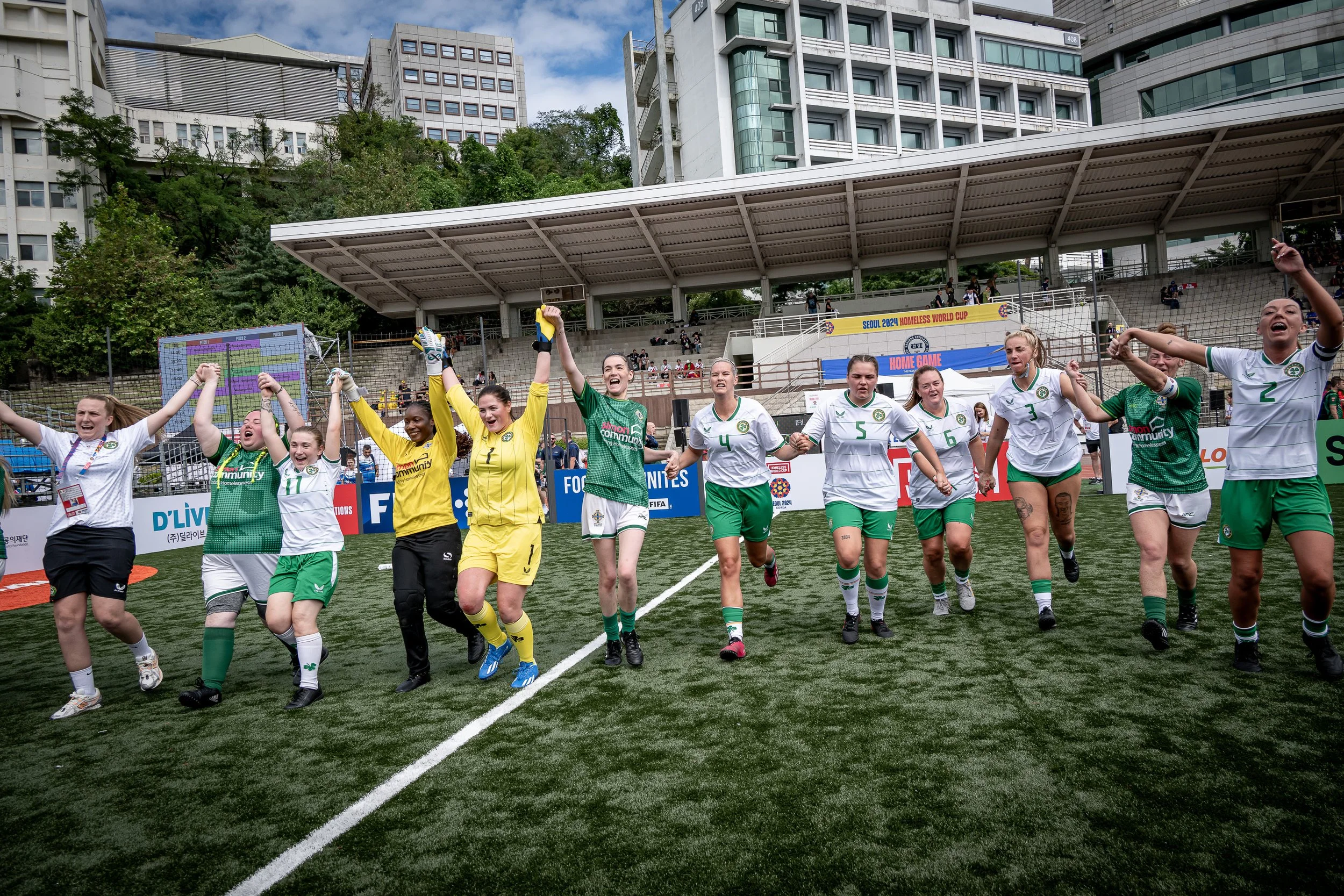 Even though many of the players in Seoul are far from home, local rivalries are still rearing their head. In the day’s first game, Ireland faced a familiar foe in their neighbours to the north. A tense game looked to be ending 1-1 until the last seconds. That’s when Megan Neill scored the winning goal in the last seconds for Northern Ireland against Ireland to win 2-1. It meant a lot. “To score the winning goal and put a smile on everyone’s face and how I felt myself and for my family and friends and everyone else back home it was brilliant. We’ve never really beaten Ireland before so to do it on pitch 1 at the Homeless World Cup is unbelievable for Northern Ireland.”