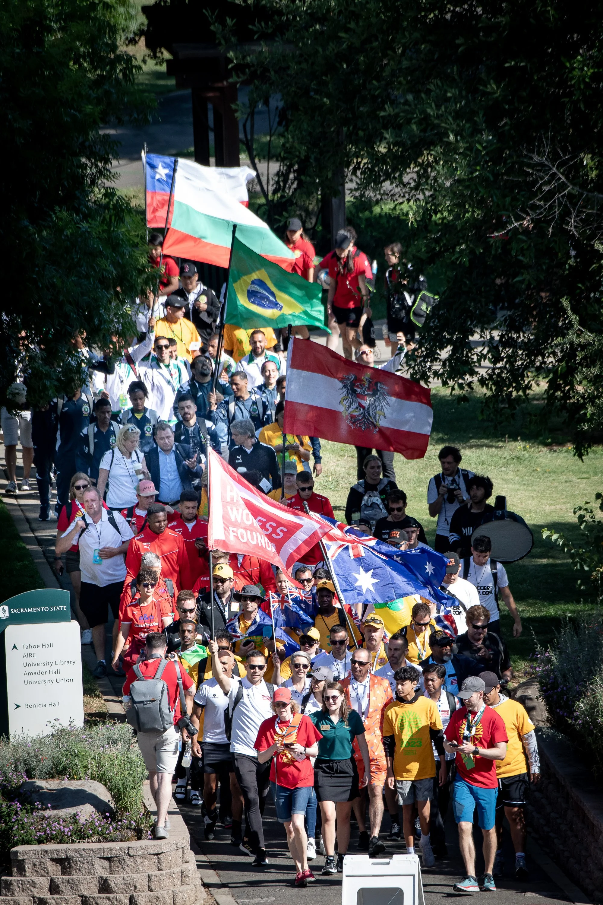 As the teams proudly held their national flags aloft, there was a palpable sense of eagerness to get started, the tournament has been on hold since 2019 due to Covid-19. As the parade paused in a few locations to regroup, momentum built as the merry band closed in on Hornet Stadium.