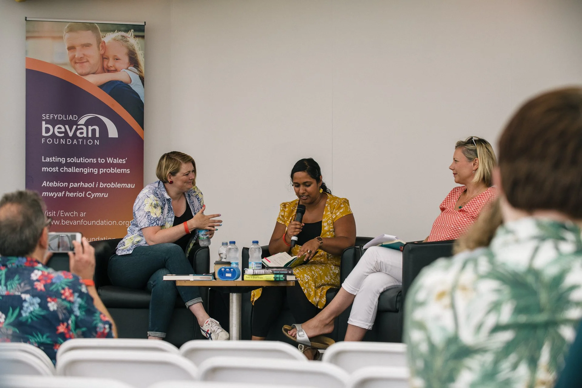 At the Bevan Tent in Bute Park, award-winning novelists Kerry Hudson (author of Low Born) and Mahsuda Snaith (author of How to Find Home) explored the way in which storytelling shifts attitudes and builds support for action on poverty and homelessness.