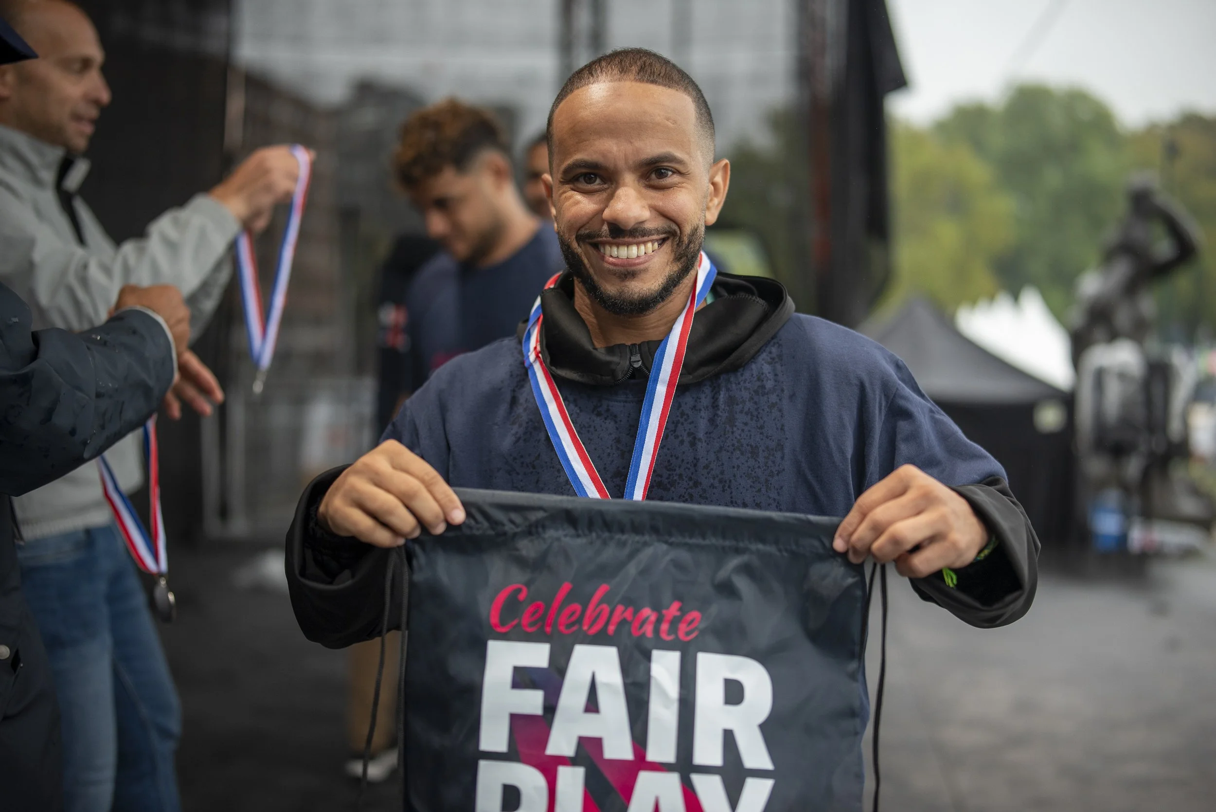 Award presenter Kasali Casal called it “a great act of fair play in the spirit of the Homeless World Cup” as the players received their medals from Raymond Beaard of the international professional footballers union FIFPRO, who sponsor the Fair Play awards.