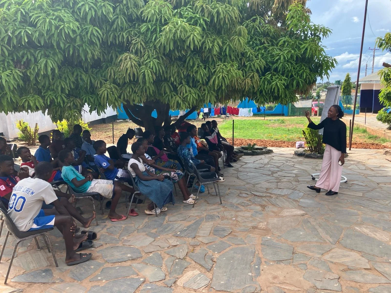 Justina Mbewe (BUSA) leads a session with boys and girls.