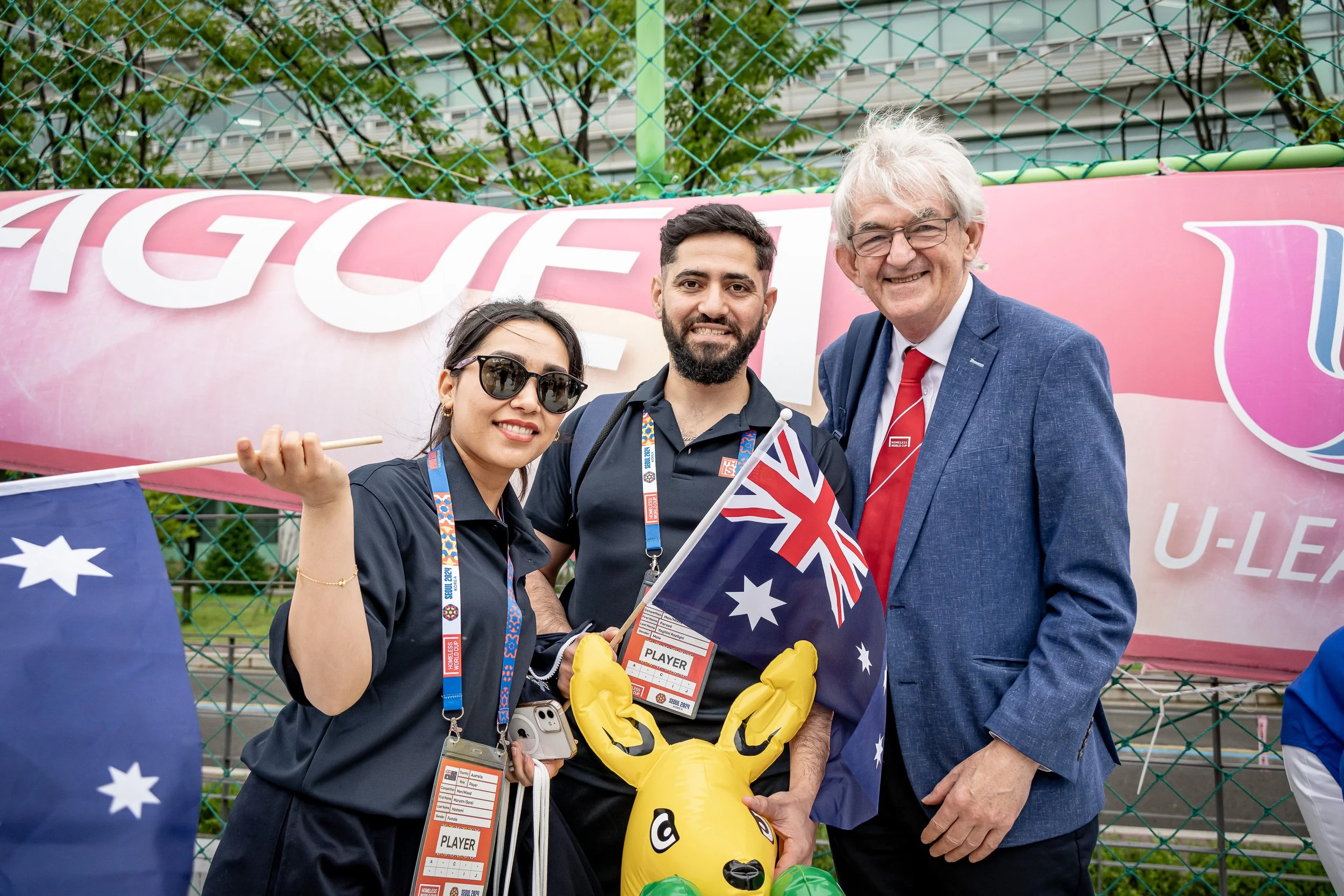 |Mel Young (right) with Australian players at the opening ceremony. Image: Anita Milas