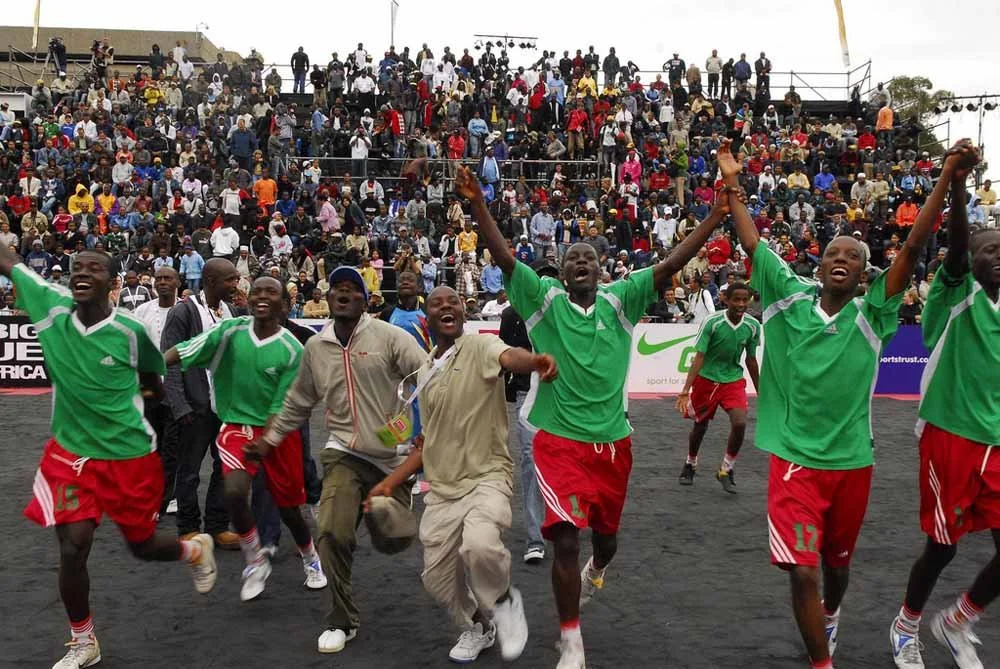 In 2006, Cape Town hosted the fourth Homeless World Cup. 48 nations competed for the title, with 496 players representing their countries. Russia lifted the cup. In 6th place was Cameroon, coached by Aaron Agien Nyangkwe and supported by Scottish reverend, anti-apartheid campaigner and newly qualified football coach, Iain Whyte.