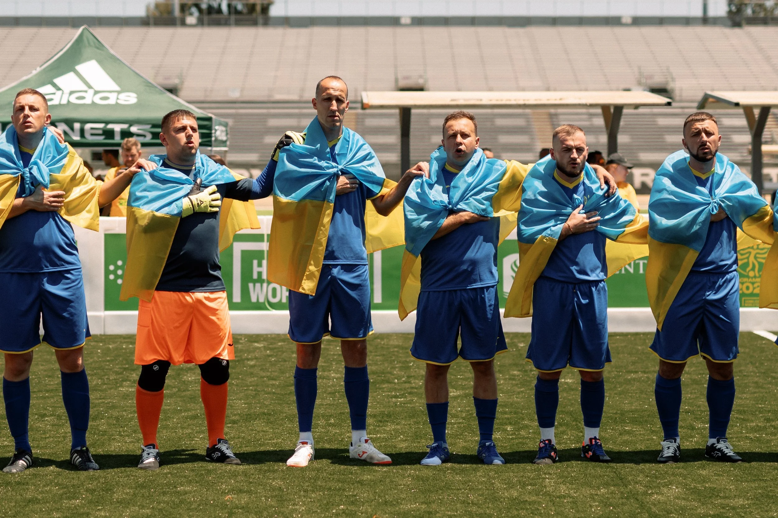 The team comprises seven men selected from a range of Ukrainian defence forces, including the police and the military. The players were chosen from an inter- and intra-force football program providing respite and rehabilitation from the physically and mentally gruelling experience of being at war. When I clarify whether the program is to help with injury recovery or take their minds off the wider circumstances, translator Danyil Drakushev makes clear it’s both, but particularly the latter: “When it’s a war, it’s psychologically hard.”